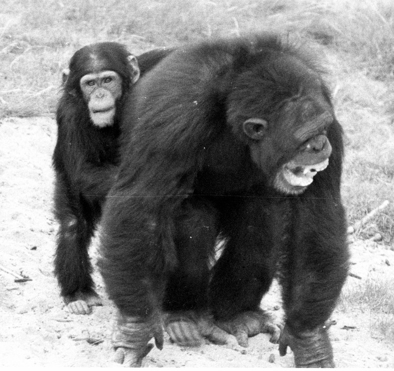 Figure 2: A juvenile chimpanzee comforts a distressed adult.