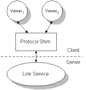 During discussions on OHP at the OHS 2.5 workshop, it soon became apparent that this solution would prove inadequate. Although the protocol shim would enable third party applications to access a link server residing on a remote machine, the rich set of tools (e.g. navigation) that accompany most contemporary hypermedia systems would no longer be available within the user's environment. One solution is for the user to run an X windows server on their machine and thus allow the display of the link service tools to be redirected to their own screen. This is only a partial solution as similar facilities are not available for Microsoft Windows or Macintosh environments that enable applications to have their display redirected to remote machines. It is clear that this is not a problem if the link server(s) being accessed is executing on the user's machine, but a preferable solution would not be limited by such a constraint.