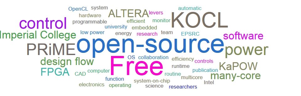 KOCL (“KAPow for OpenCL”) is PRiME’s automated tool flow for generating FPGA designs capable of accelerating OpenCL kernel execution whilst reporting their own power consumption. The tool was created by PRiME researchers at Imperial College as part of Research Theme 3 – Reconfigurable Architectures.